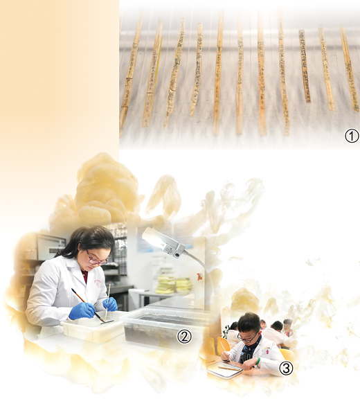 “要经过一系列的保护流程,才能让枚枚简牍从糊满泥土、通体发黑、糟朽脆弱的状态恢复到具有足够强度支撑、文字墨迹可辨别释读的程度。”金平说。